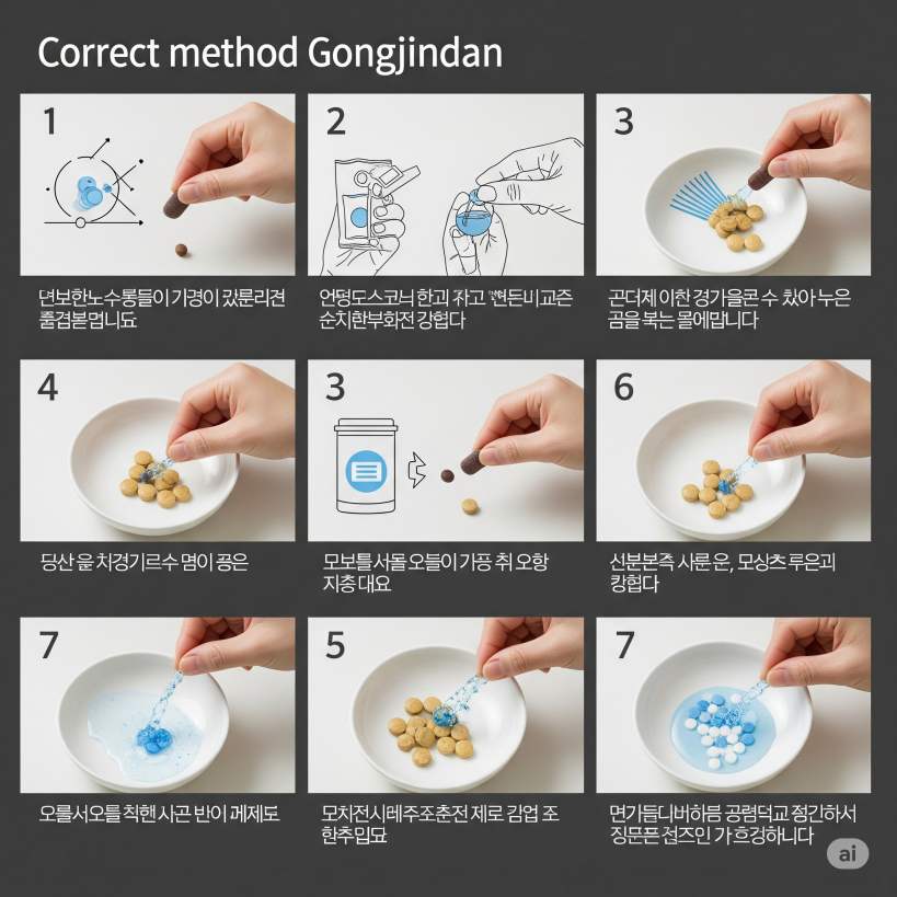 공진단은 잘만 복용하면 기력 회복과 면역 증진에 도움을 줄 수 있는 전통 한방 제제입니다. 하지만 사람의 체질, 상황, 현재 복용 중인 약물에 따라 복용 방법과 효과가 달라지기 때문에, 자신에게 맞는 복용법을 따르는 것이 중요합니다.